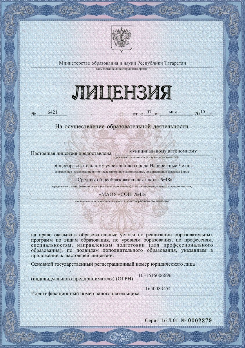 Муниципальное автономное общеобразовательное учреждение города Набережные Челны «Средняя общеобразовательная школа №48»
