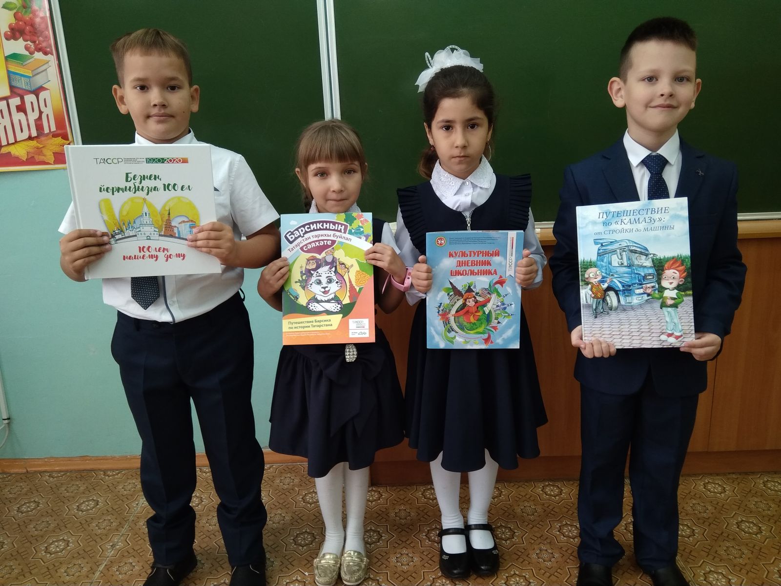 Получение подарков первоклассниками от ПАО "КАМАЗ", которые были подготовлены к 50-летнему юбилею
