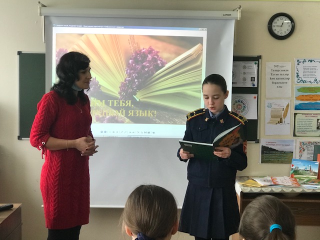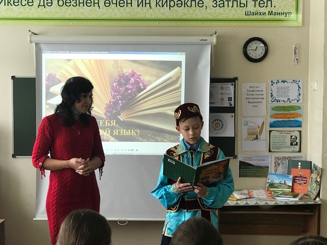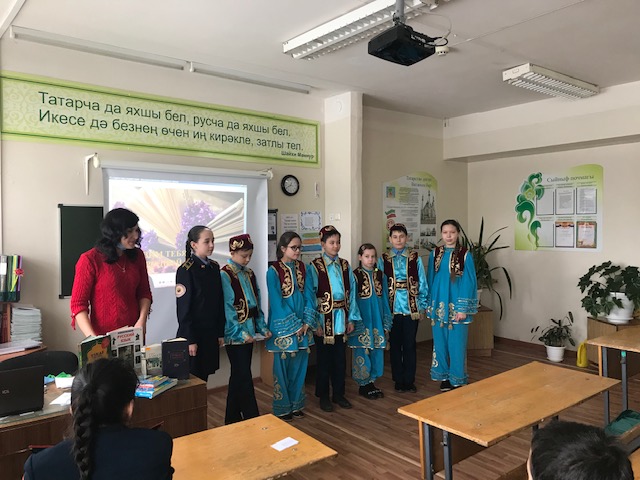 "Туган телләр һәм халыклар бердәмлеге елы " кысаларында мәктәбебездә шәһәр китапханәсе укучылар белән очрашу оештырды. Китапханәче Лилия Равшадовна "Туган телебезне зурлыйбыз" темасына әдәби кичә оештырды. Кичәдә 6в сыйныфы укучылары актив катнаштылар: шигырьләр сөйләделәр, ярыштылар, күңел ачтылар.