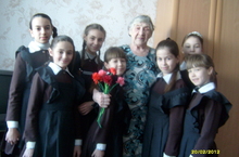 Тимуровский отряд "Мы вместе" поздравили с Международным Женским днем 8 марта ветерана Великой Отечественной Войны Богородскую Екатерину Дмитриевну. Поздравили её музыкальными номерами, а так же дети вручили Екатерине Дмитриевне набор открыток "Уроки мужества" с фотографиями ветеранов ВОВ, труженников тыла, узников фашистких лагерей. В наборе есть фотографии и самой Екатерины Дмитриевны и другого нашего ветерана - Канидиева Ивана Николаевича.
