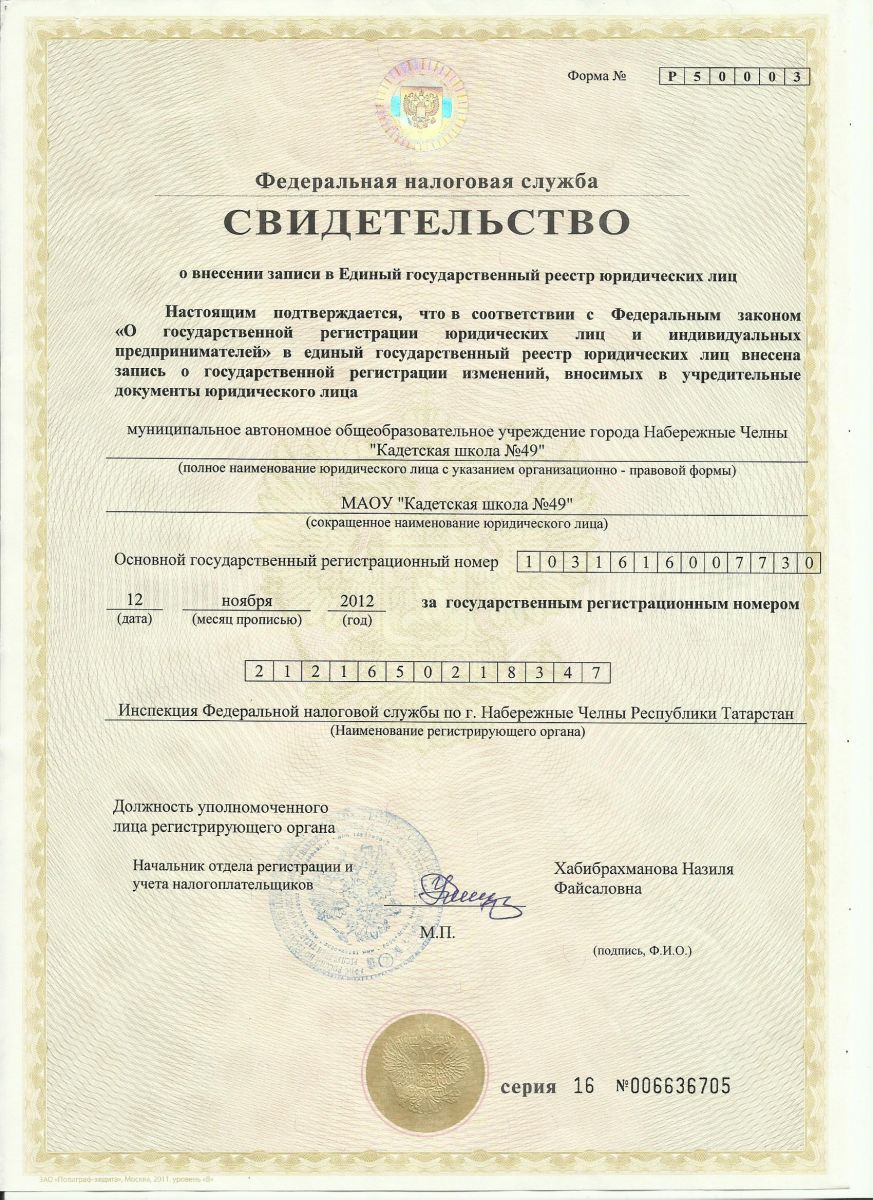 муниципальное автономное общеобразовательное учреждение города Набережные Челны «Кадетская школа №49»
