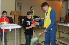 Выборы Спикера ШСУ МАОУ СОШ №4 начались ровно в 8:00. Председатель УИК Ахметзянов И.И. поздравил первого избирателя - 2014, ей стала ученица 5 А класса Фазлыева Зиля.