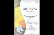 III дәрәҗә дипломга лаек булды. Фәнни җитәкчесе