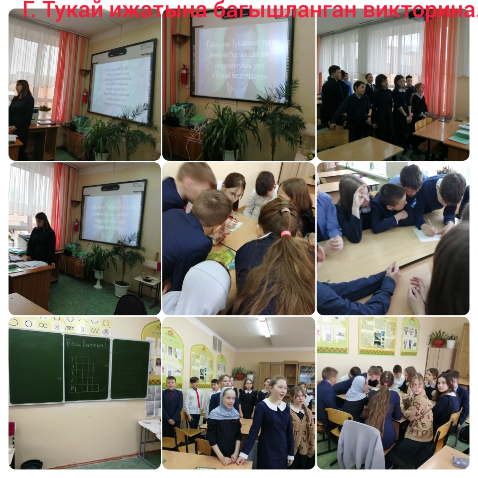 Опубликовано: 21.04.202220.04.2022 көнне 5 в сыйныфында Габдулла Тукайның тормыш юлына, иҗатына багышланган викторина узды. Укучылар ике командага бүленеп, Г.Тукай иҗаты буенча көч сынаштылар. Аның тормыш юлына, иҗатына кагылышлы сорауларга җавап яздылар.“Бәхетле балалар” командасы 22 балл җыеп, җиңүче булды, “Туган тел” командасы – 16 балл җыйды. Кичә бергәләп, “Туган тел” җырын җырлап тәмамланды.