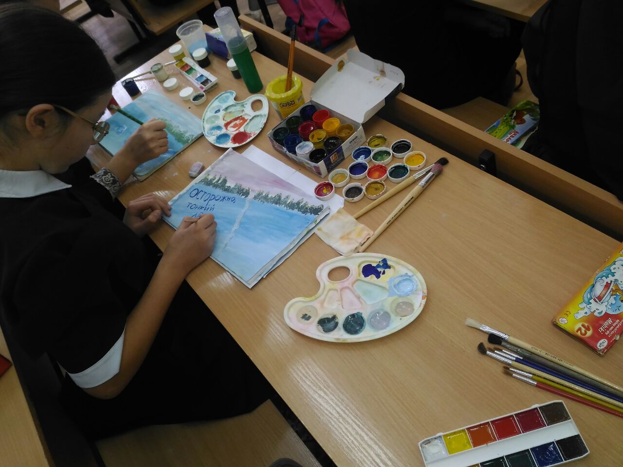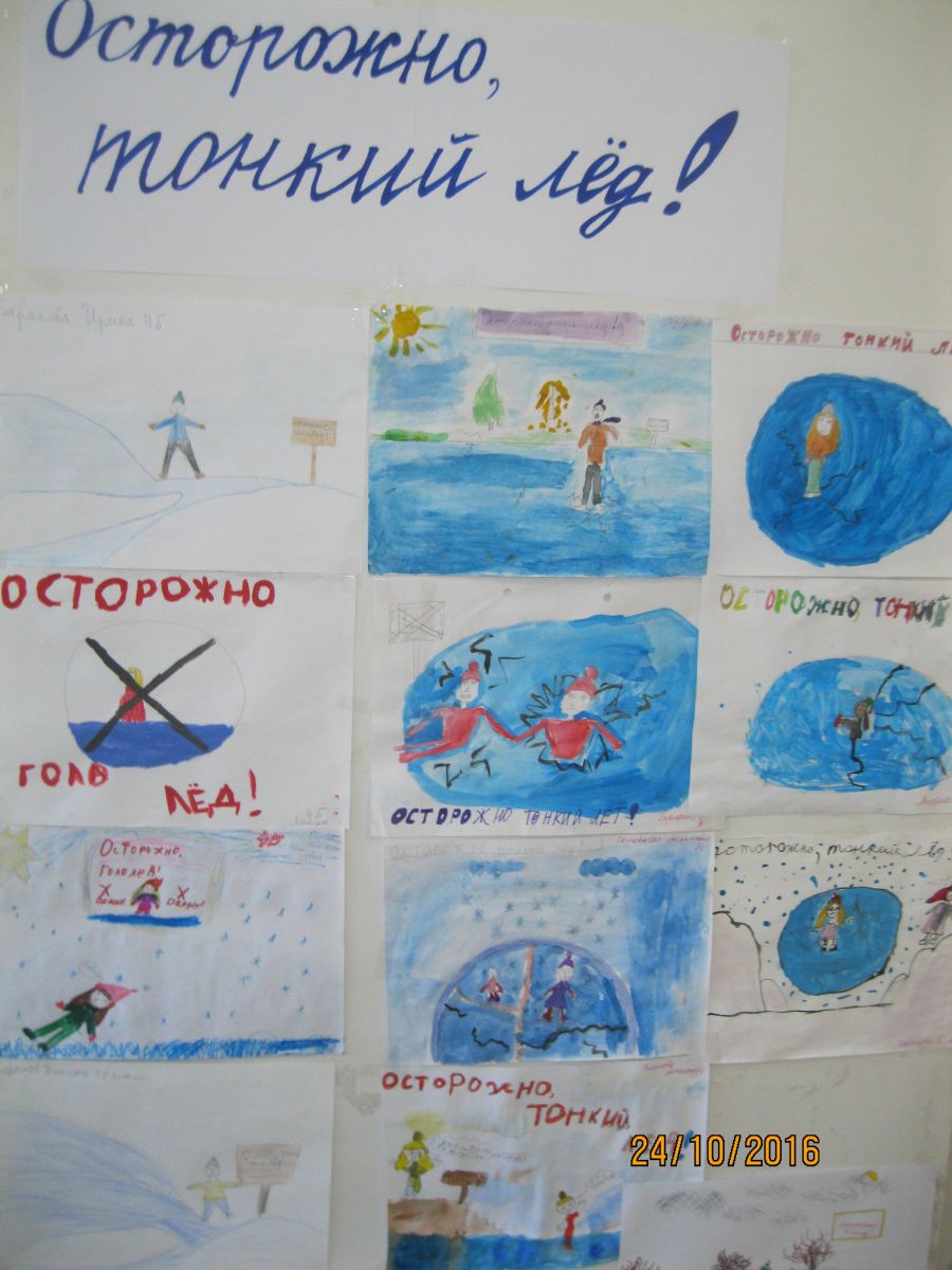Опубликовано: 20.10.2016Одновременно с этим учителя изобразительного искусства провели конкурс рисунков среди учащихся 1-6 классы по теме: «Осторожно-тонкий лёд», с оформлением выставки. Классные руководители проведут перед осенними каникулами инструктажи по ТБ с обучающимися 1-11 классов.