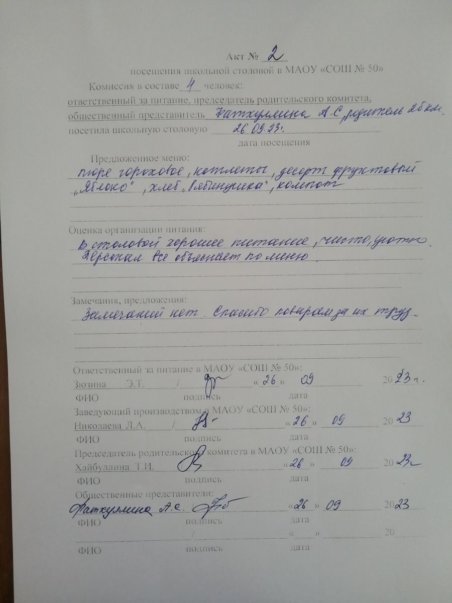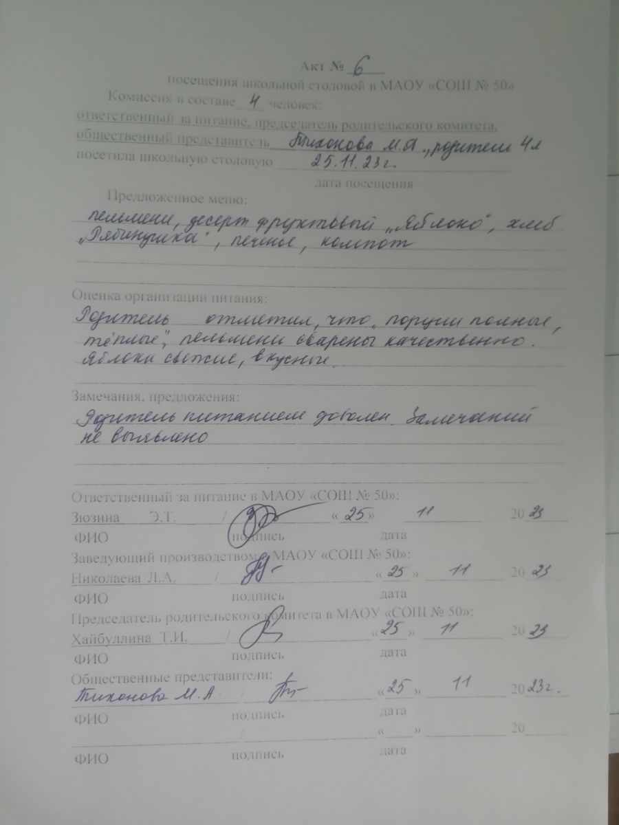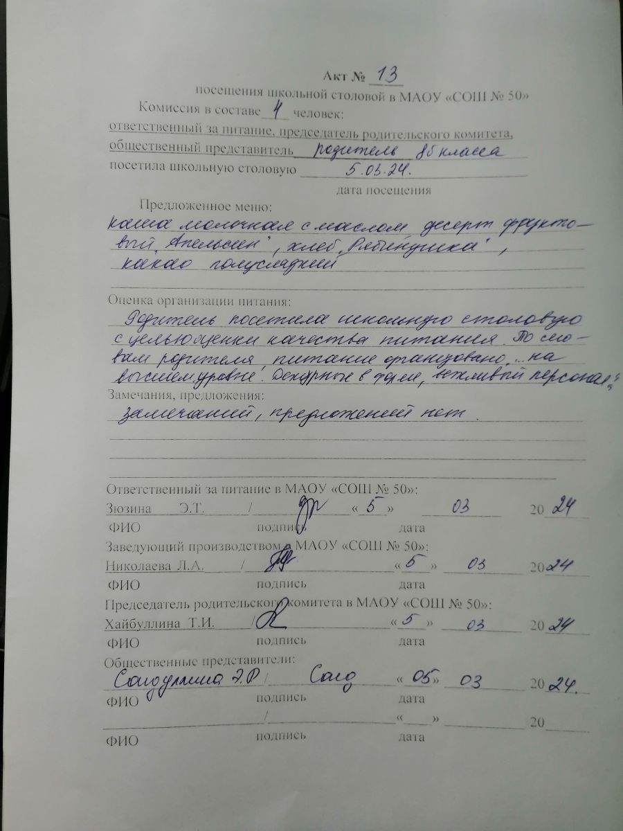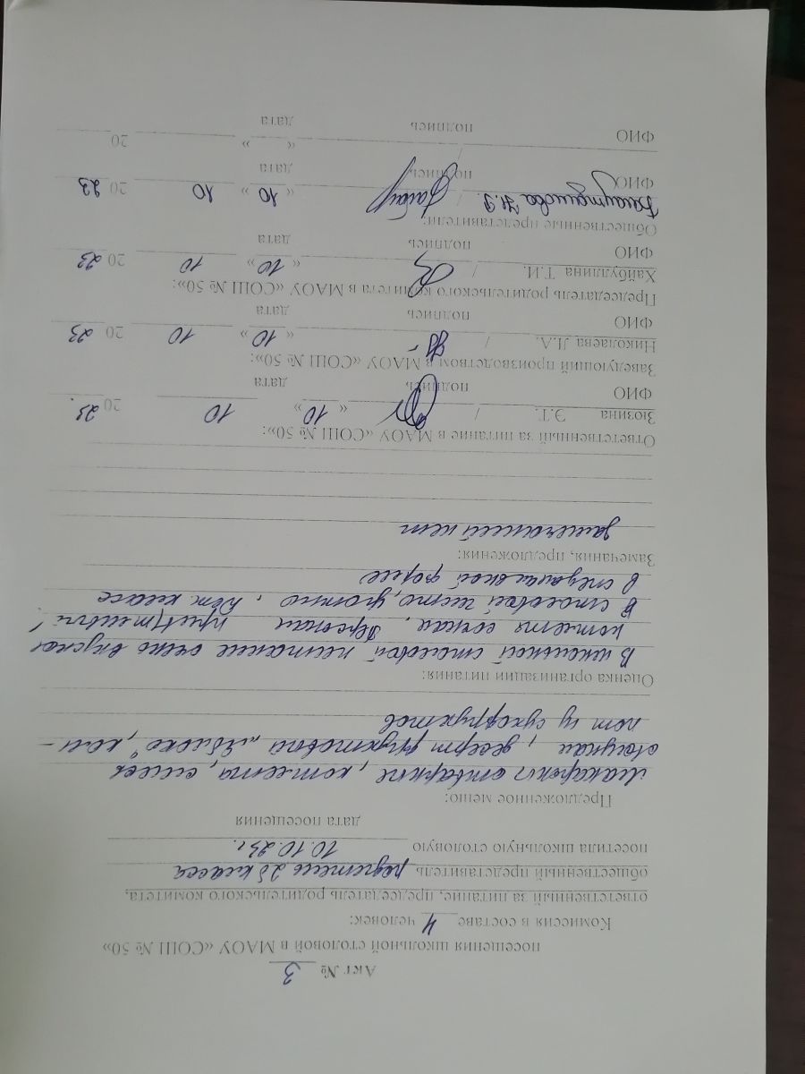 Акты посещения школьной столовой