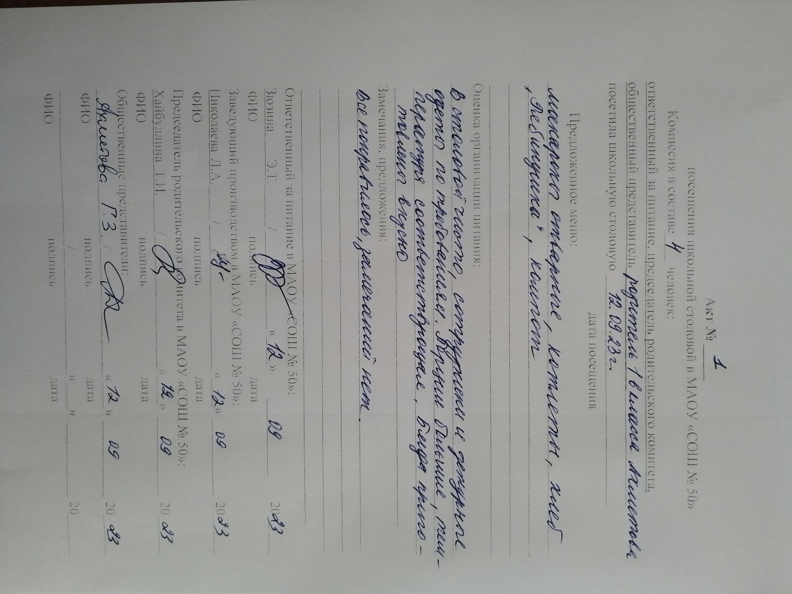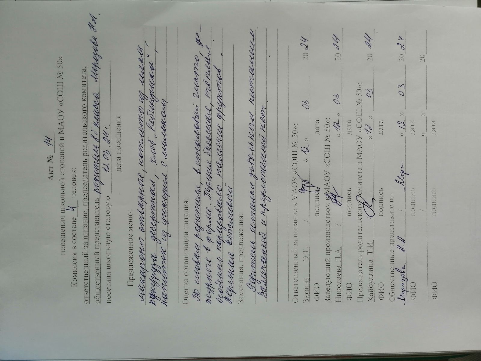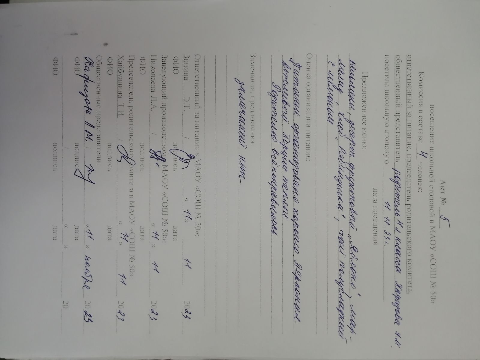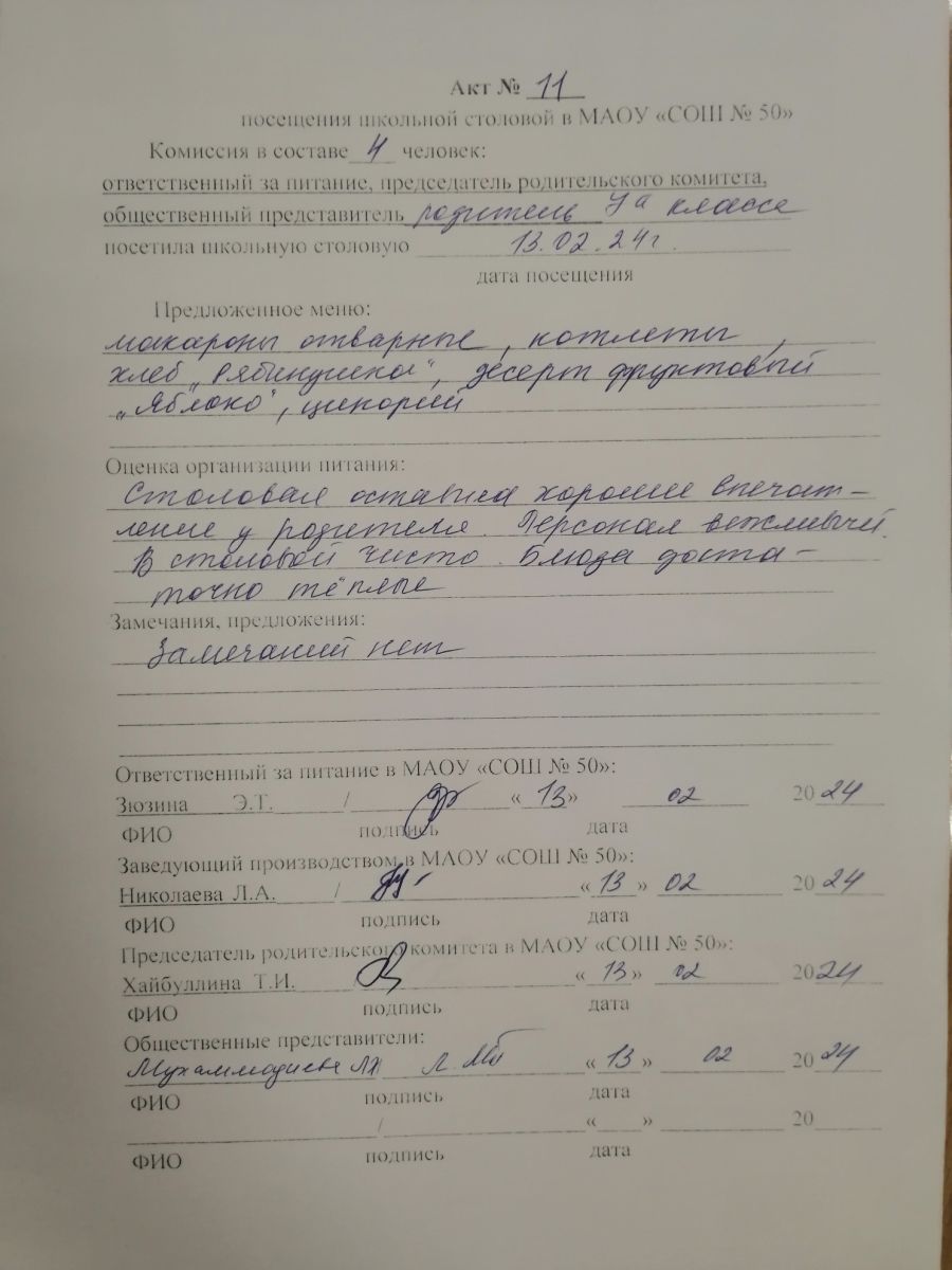 Акты посещения школьной столовой