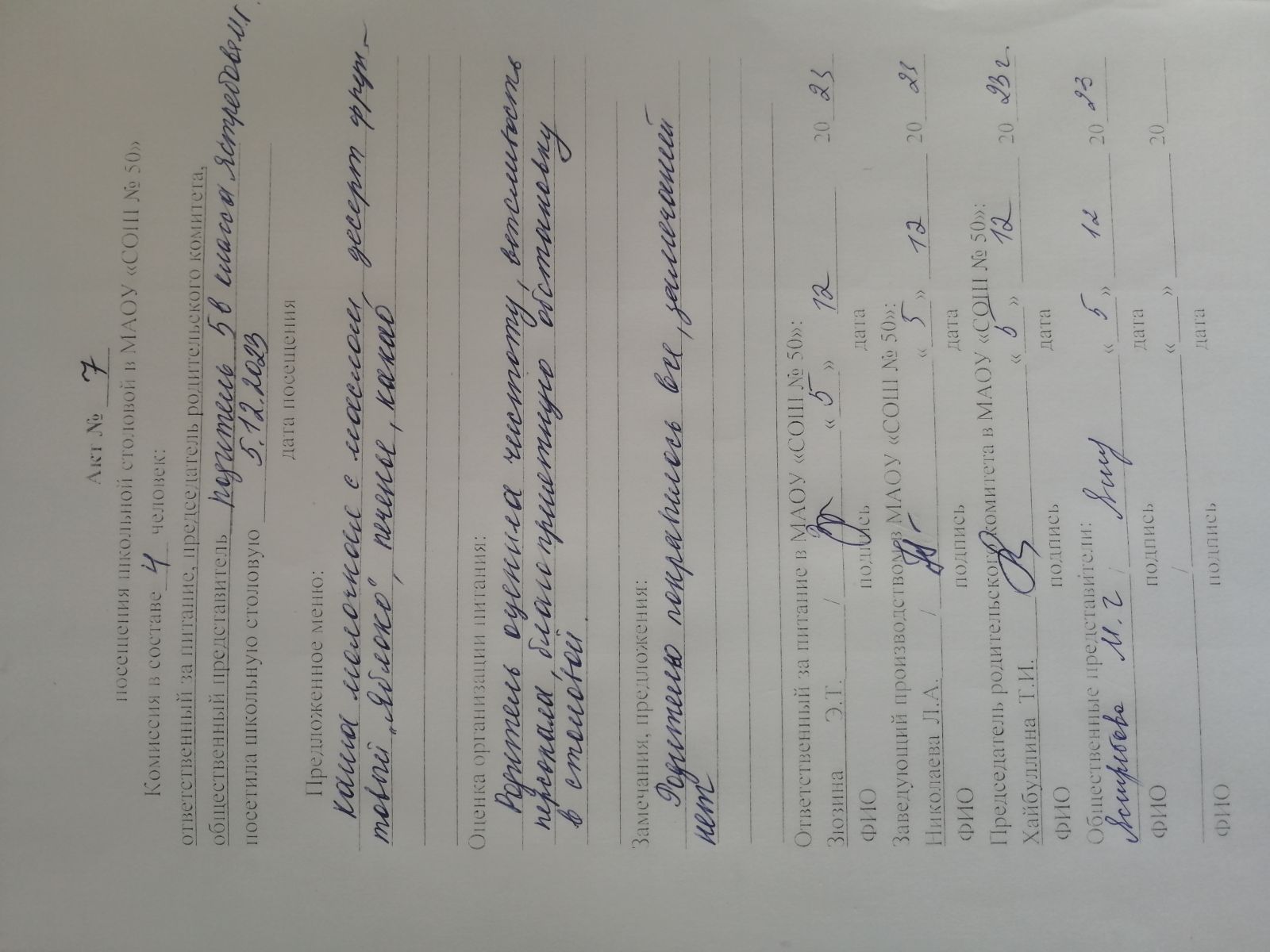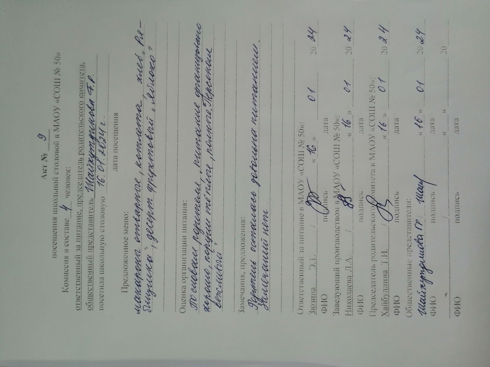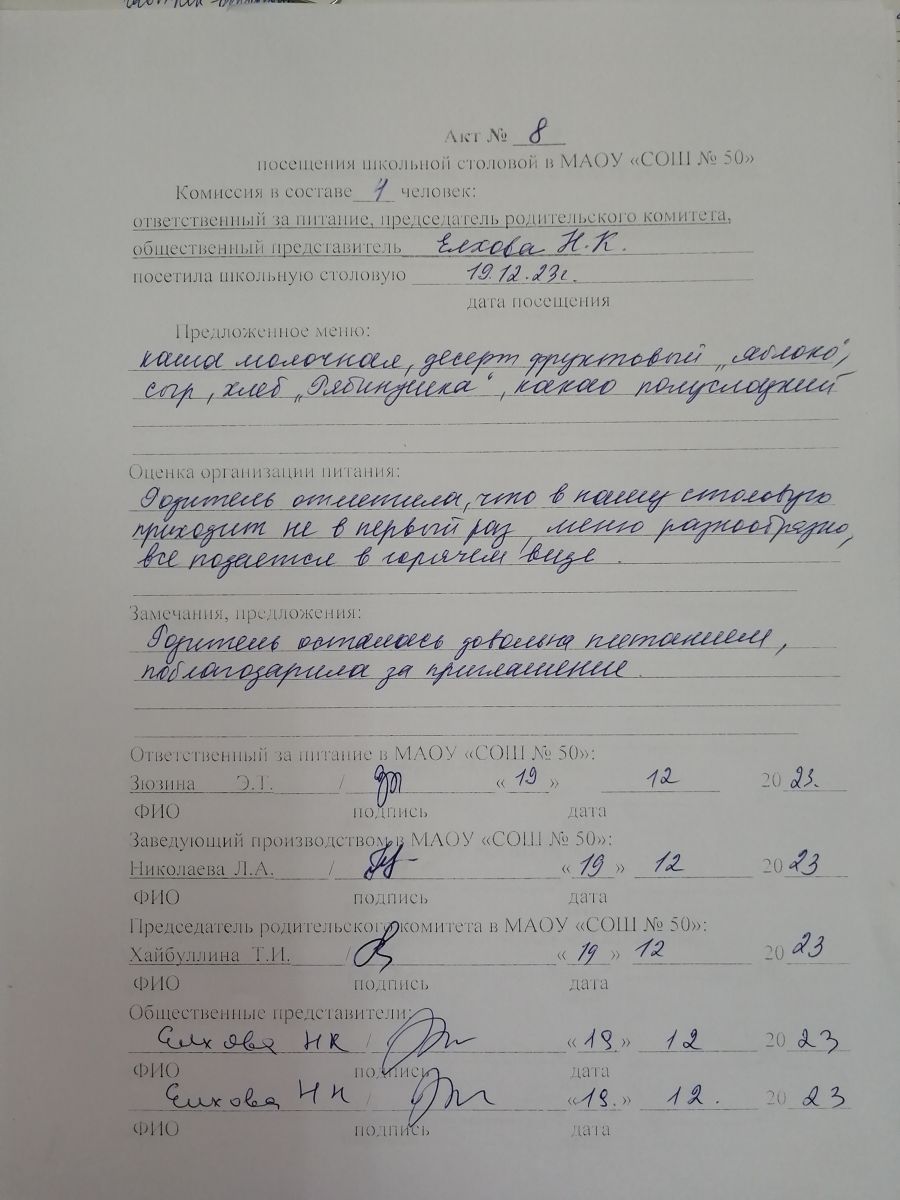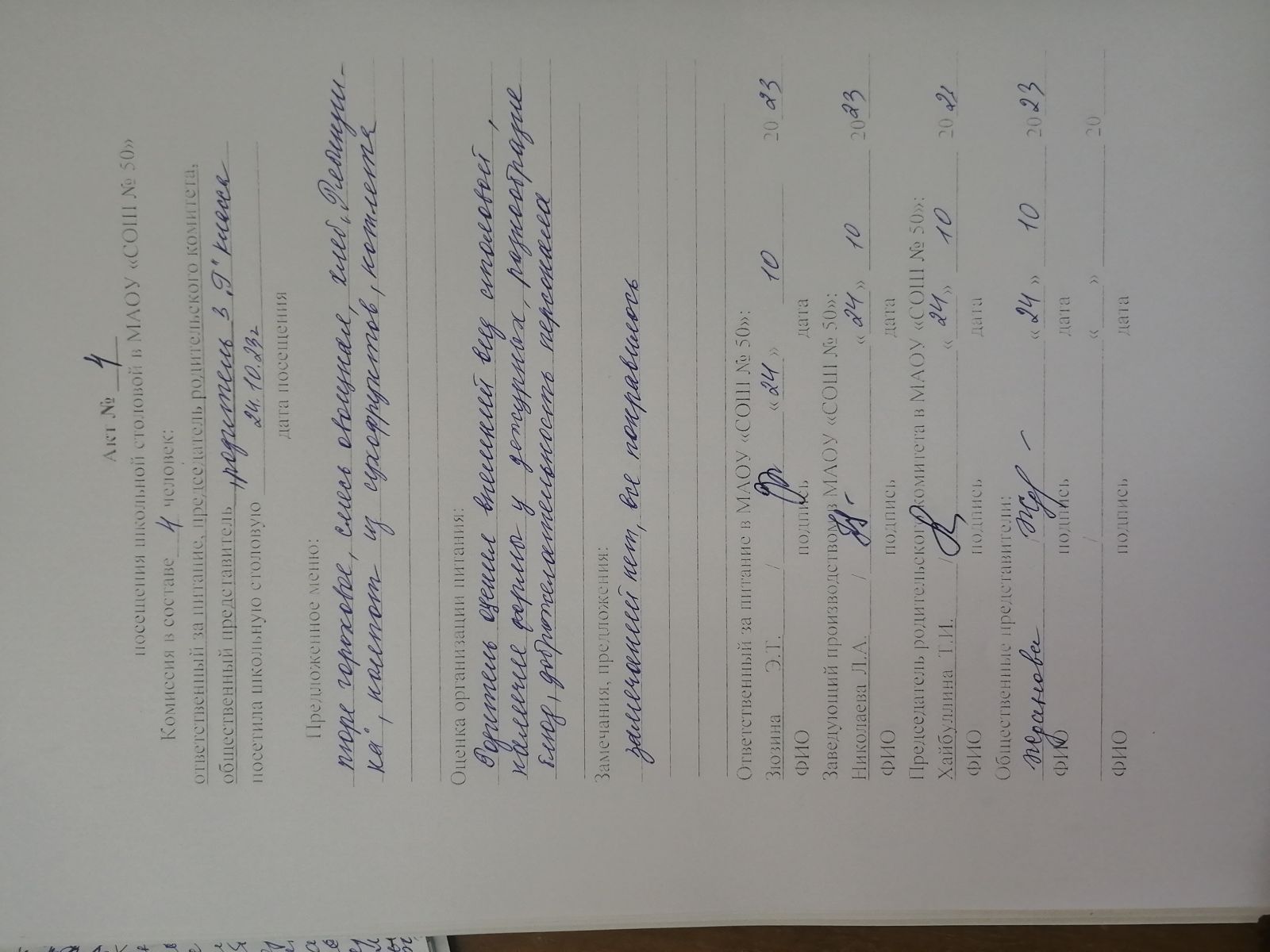 Акты посещения школьной столовой