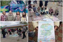 Учащиеся 8А класса (рук. Беришвили В.Д.) заняли 2 место в городском конкурсе рисунков на асфальте "Планета Земля в наших руках", посвященному Международному дню климата.