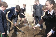 Учащиеся 4-х классов провели посадку деревьев к 70-летию со дня Победы.