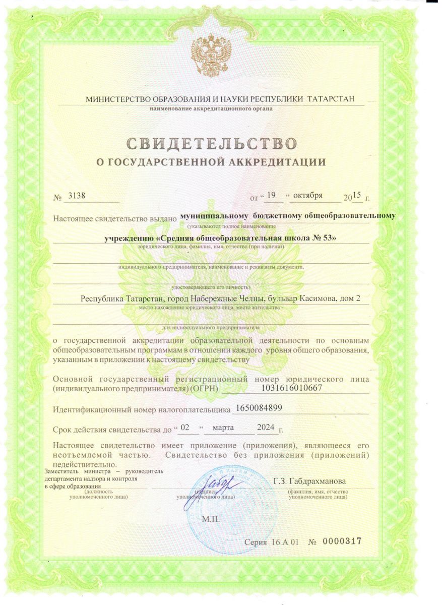Муниципальное бюджетное общеобразовательное учреждение «Средняя общеобразовательная школа №53»/ Яр Чаллы шәһәренең "53 нче урта гомуми белем бирү мәктәбе" муниципаль бюджет гомуми белем бирү учреждениесе