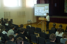 Урок "Первостроители КамАЗа" 01.09.2011 1сентября для всех учащихся школы был проведен урок, посвященный первым строителям КамАЗа. Для учащихся 8-11 классов урок проводила учитель истории Рустами Марина Вячеславовна. Ребята говорили о начальнике управления строительством КамГЭСэнергостроя Батенчуке Е.Н., первом генеральном директоре КамАЗа Васильеве Л.Б., первом секретаре горкома КПСС Беляеве Р.К.