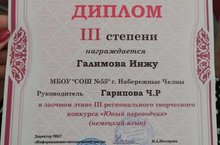 Ученица нашей школы Галимова Инжу (11 класс) прошла в финал по немецкому языку в рамках Третьего регионального поэтического конкурса «Юный переводчик».