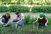 В июне в школе было трудоустроено через ЦТУСМ 10 учащихся. Учащимися, работающими на пришкольном участке, были проведены следующие виды работы: сооружение клумб; посадка цветов; разрыхление и прополка клумб; обрезка кустарников; поливка растений; уборка территории от мусора, сухих веток.