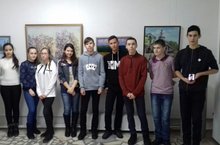 8д класс посетили выставку местных художников, организованную картинной галереей, посмотрели на пейзажи, натюрморты.