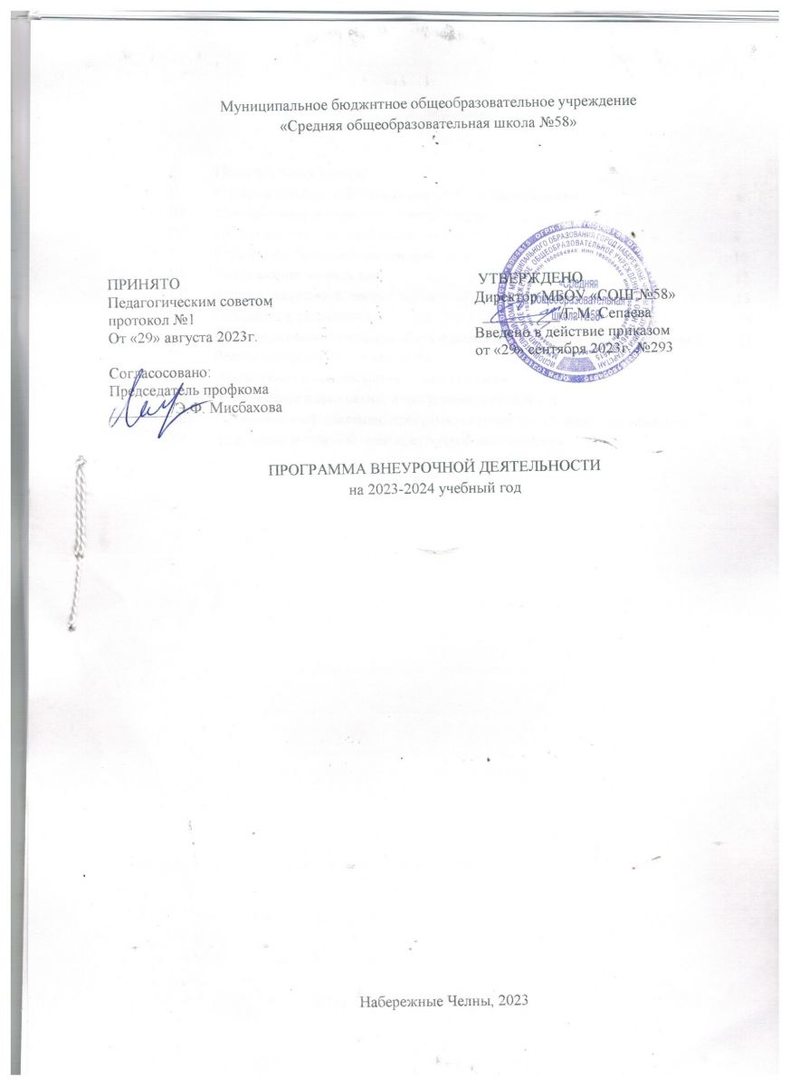 Программа внеурочной деятельности на 2023-2024 учебный год Титульник