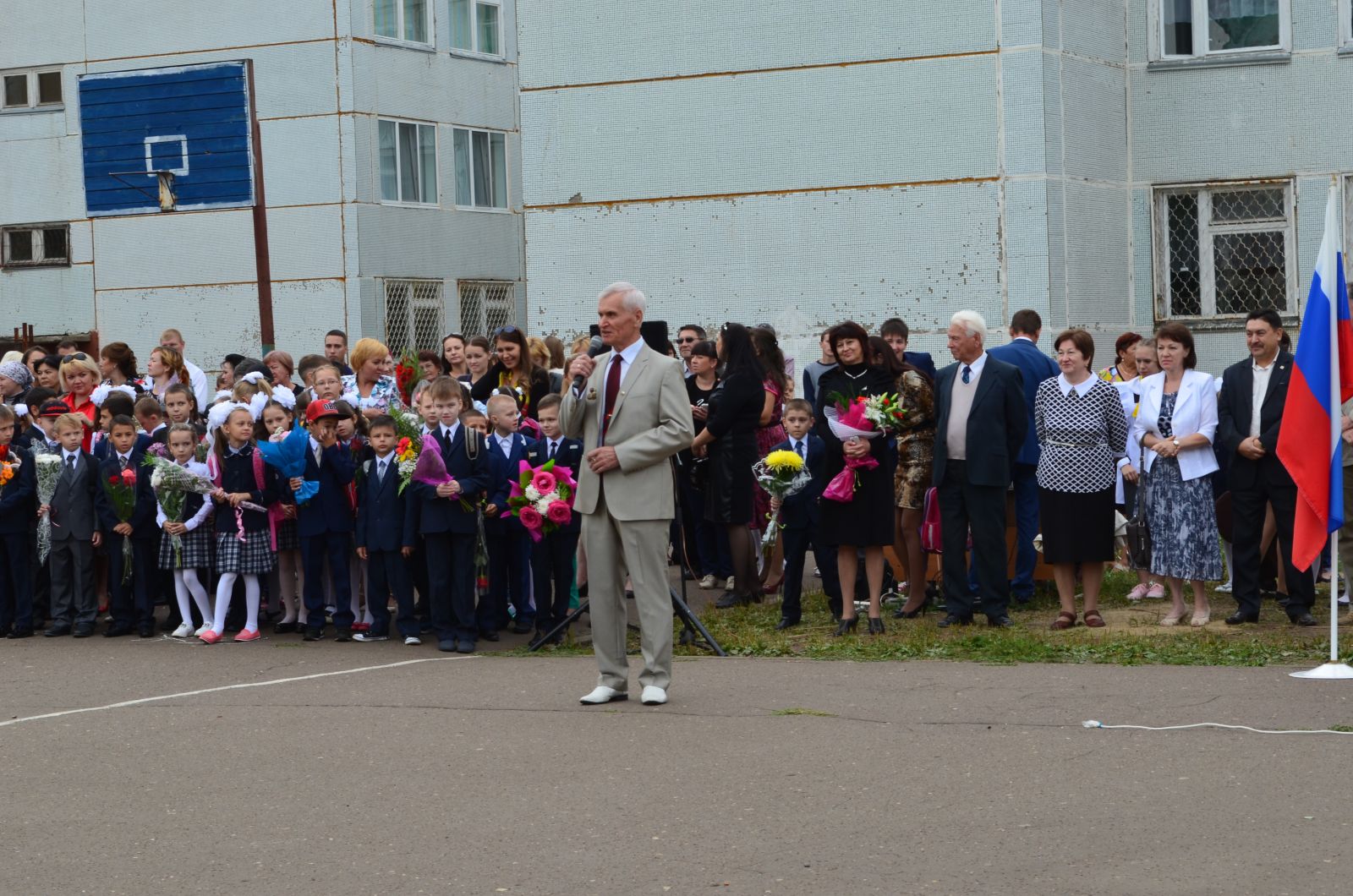 Открыла праздник, по традиции, директор МБОУ “СОШ №58” Набиуллина Лиза Рихмановна. Она приветствовала учеников праздничной речью и пожелала им успехов в предстоящем учебном году.