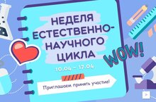 Математика и информатика, география, физика и астрономия, химия и биология - приглашают всех желающих принять участие в неделе естественно-научного цикла, которая проводится с 10 апреля по 17 апреля 2023 года!