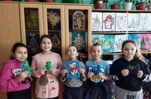 В дни зимних школьных каникул ребята 2Д класса приходят в школу, чтобы заниматься любимым делом вместе с друзьями. Сегодня они мастерили новогодние поделки из ткани. Игрушки получились замечательные!