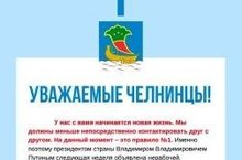 Мэр Набережных Челнов Наиль Магдеев обратился к челнинцам с призывом ограничить выходы на улицу: "Все эти меры - не карательные меры, это острая необходимость, которая диктуется сегодняшним состоянием в нашей стране, нашей республике, нашем городе. Если каждый из нас будет беречь себя, своих родных, близких, мам и пап, то безусловно нашими совместными действиями и усилиями, мы сможем преодолеть все те трудности, которые сегодня вызваны этой страшной пандемией"