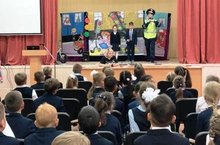 Сегодня в гости к первоклассникам пришли артисты театра ПДД, которые в игровой форме, на импровизированной проезжей части, напомнили малышам о правилах дорожного движения для пешеходов.