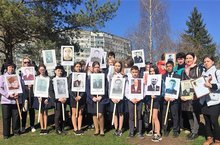 Учащиеся и педагоги нашей школы 9 мая приняли участие во Всероссийской акции «Бессмертный полк». В многотысячной колонне челнинцев и гостей города начали своё шествие в 15.00 от площади "Азатлык", прошли несколько километров по проспекту Хасана Туфана до майдана парка Прибрежный, совершив круг почета под бурные аплодисменты зрителей на трибунах.