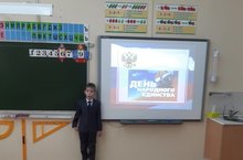 Педагогическая группа "Прометей " и Школьный Свет Учащихся провели для начальных классов информационную беседу «Славься ты, ты Русь моя!». Ребятам рассказали об истории возникновения праздника День народного единства, о подвигах народа, провели беседу на тему мужества и чести