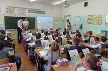 Спикер Школьного совета учащихся Кашин Артур, депутат Городского совета учащихся Ишекова Олеся, совместно с активистом ШСУ Насыровой Камилëй проводят классные часы, мастер-классы для юных учеников нашей школы, учеников 1А класса, на тему: Световозвращающие элементы. Что это такое? И как их носить?