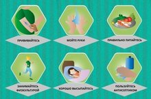 Неспецифическая профилактика простудных заболеваний включает мероприятия по проведению оздоровления и укрепления организма, такие как закаливание, правильное питание, регулярные физические нагрузки, прогулки на свежем воздухе, походы на природу, употребление чистой воды (1-2 литра в сутки), витаминов, специальных лекарственных средств, воздушные и солнечные ванны, здоровый сон, обтирания прохладной водой и так далее.