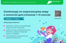 В период с 6 февраля по 4 марта 2024 года на образовательной платформе Учи.ру проходит онлайн-олимпиада по окружающему миру и экологии (https://ecomir.uchi.ru) для учеников 1–9 классов. Организаторами выступают АНО «Национальные приоритеты» и образовательная онлайн-платформа Учи.ру при поддержке Министерства природных ресурсов и экологии Российской Федерации и Агентства стратегических инициатив по продвижению новых проектов в рамках национального проекта «Экология».