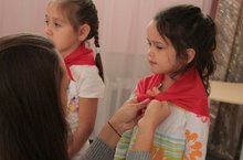 Посвящение в тимуровята воспитанников д/с "Щелкунчик" тимуровцами отряда "Дружба".