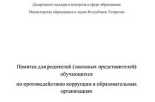 Памятка для родителей (законных представителей) обучающихся по противодействию коррупции в образовательных организациях 10.11.2016