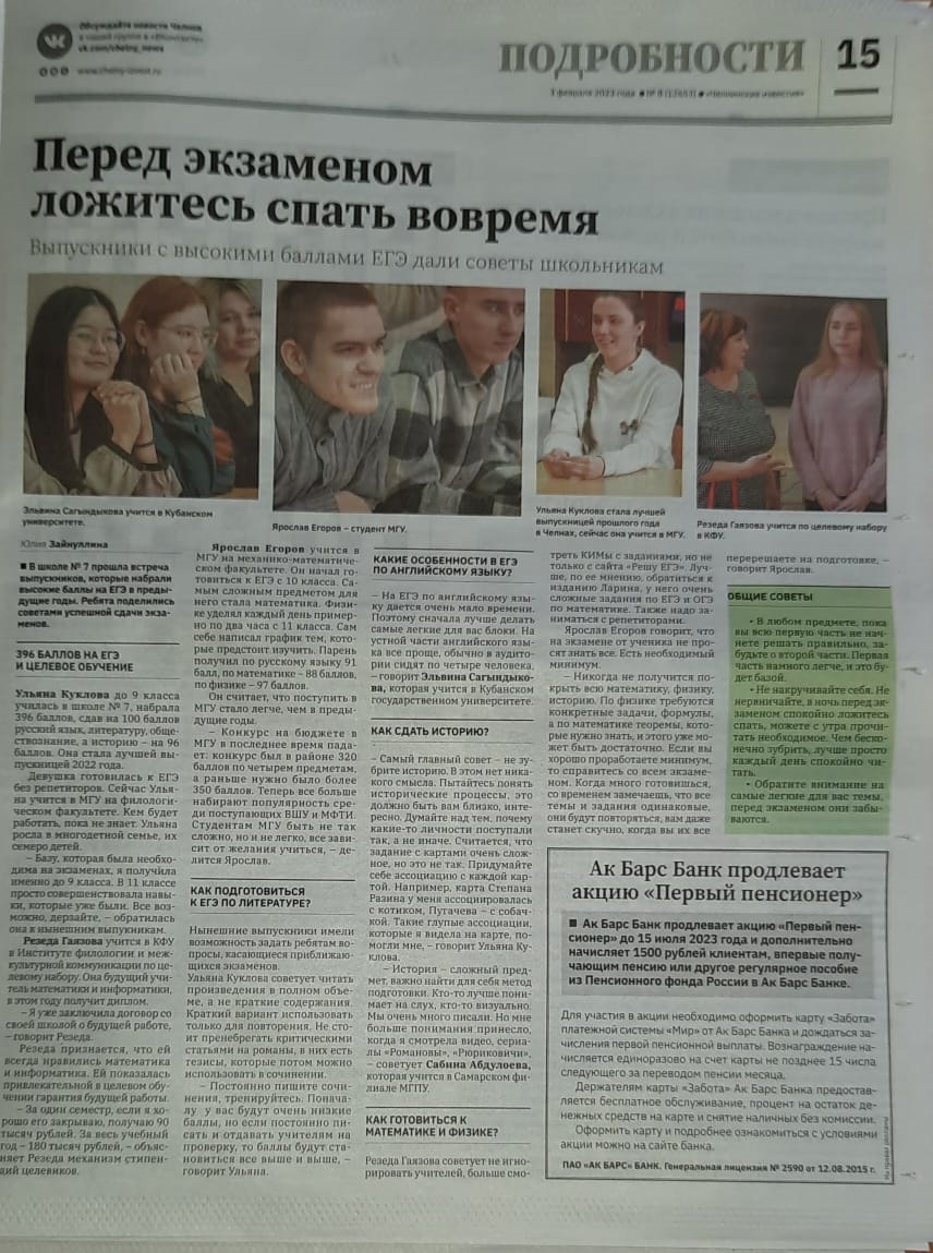 Муниципальное бюджетное общеобразовательное учреждение «Средняя общеобразовательная школа №7» г. Набережные Челны - новости