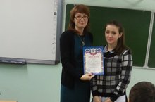 Юрченко Татьяна ученица 9 Б класса во Всероссийском конкурсе "В науку первые шаги" заняла 1 место, руководитель Бадрутдинова Г.А.