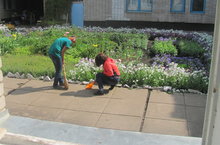 На пришкольном участке идет работа, основной целью которой является полив и прополка цветников. Особое внимание уделяется сохранению цветников на территории школы. Производится ежедневный полив цветников, проводится прополка.Также ученики и учителя следят за чистотой и порядком на пришкольном участке, ежедневно собирают мусор, подметают асфальт, собирают ветки, убирают траву. Работа на пришкольном участке продолжается.