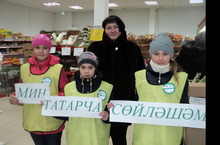 В рамках республиканской акции «Мин татарча сөйләшәм» ученики 4 В класса провели среди населения опрос на улице и в общественных местах на определение уровня знаний татарского языка. Ребята задавали вопросы на татарском языке, раздавали эмблему акции, буклеты «Мои первые 150 слов на татарском».