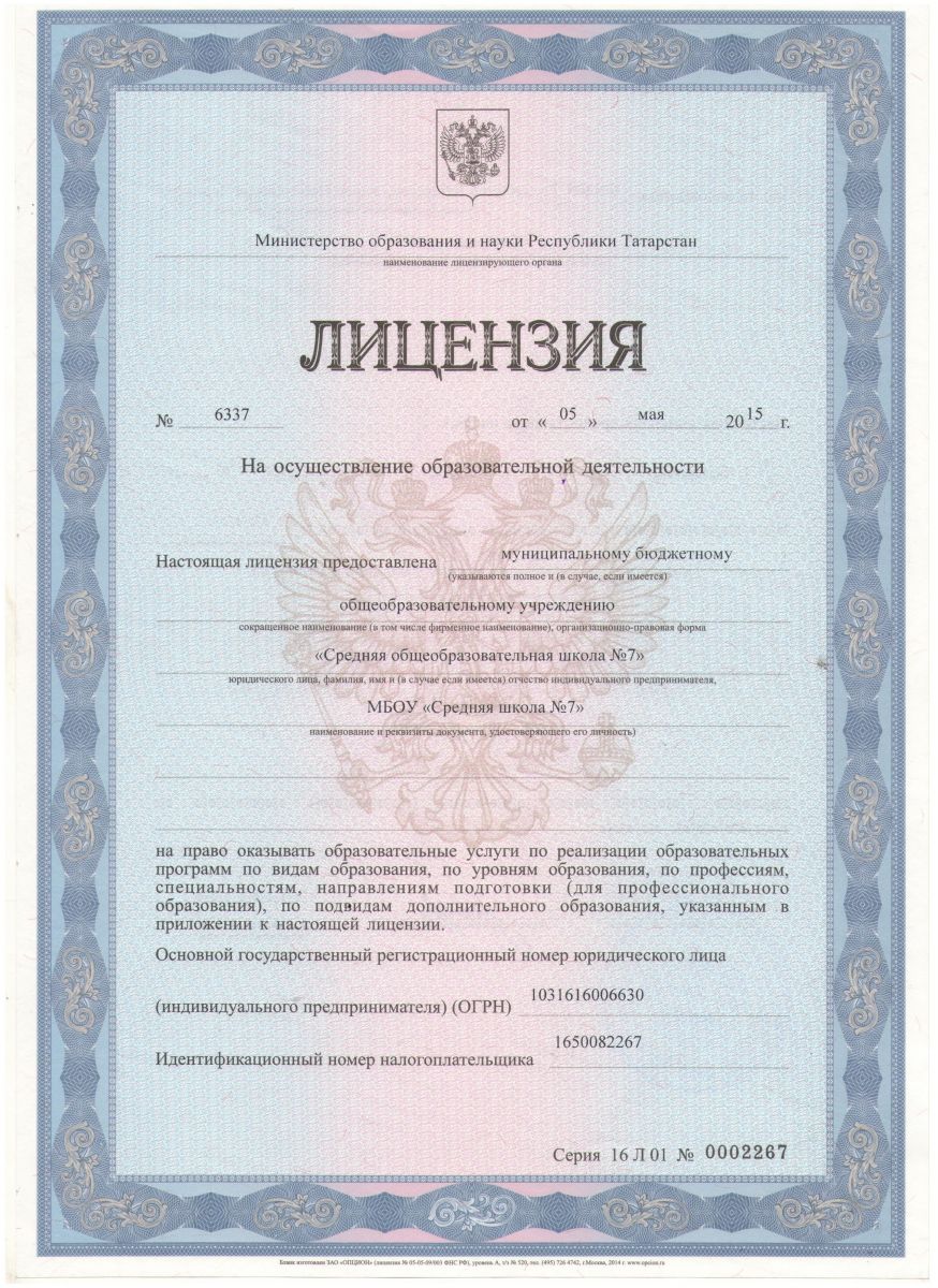 Муниципальное бюджетное общеобразовательное учреждение «Средняя общеобразовательная школа №7» г. Набережные Челны