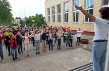 В рамках антинаркотичекой акции "Жизнь без наркотиков " в лицее проведен флешмоб "Я, ты, он, она- мы здоровая страна!"