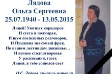 Завтра (14.05.2015г.) в 11:00 возле морга г.Набережные Челны состоится прощание с учителем истории Лядовой Ольгой Сергеевной.