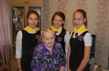Поздравление Павлы Михайловны Прядиной с Днём Старшего Поколения 09.10.2014г. Тимуровский отряд 7-х классов
