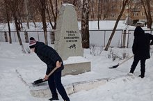 17 февраля 2020 года тимуровским отрядом "Лучики" (учащиеся 7 Б класса школы), под руководством учителя татарского языка Хатмуллиной Р.Х. организована чистка заснеженной территории около памятника погибшего в 1989 году учителя школы Товма О.А.