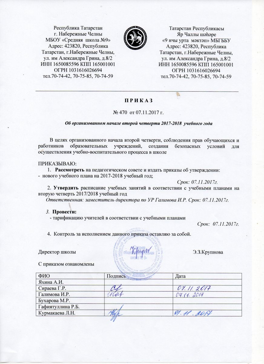 Приказ об организованном начале 2 четверти 2017-2018 учебного года.