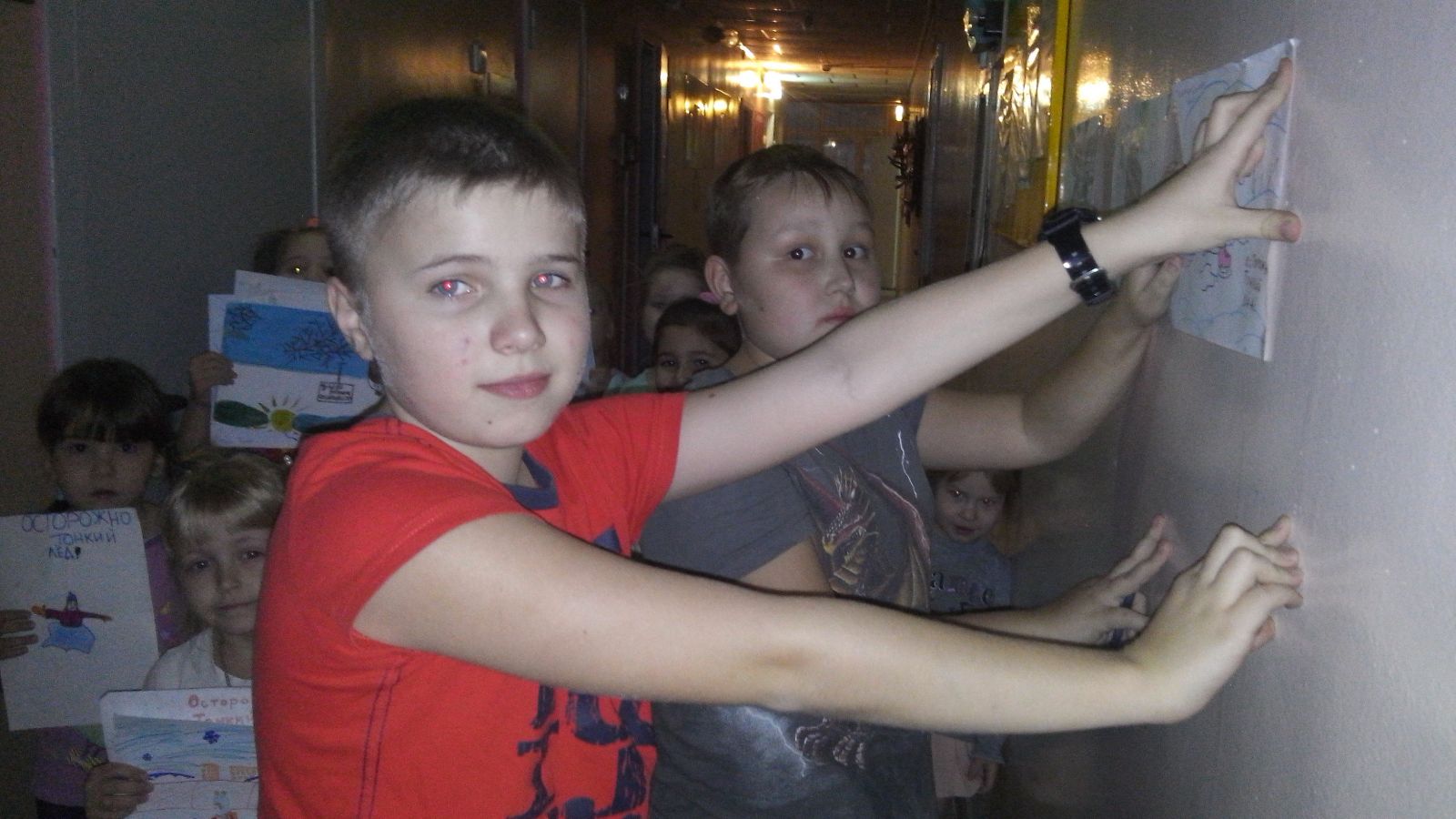 Зима на пороге. Реки, озера и пруды начали покрываться тонким льдом, вода потемнела. Такой лед легко проламывается, если на него наступить, человек может оказаться в холодной воде, подо льдом. Однако каждый год многие люди, особенно дети, пренебрегают мерами предосторожности и выходят на неокрепший и непроверенный лёд. Эта тема была раскрыта в детских рисунках на уроках изобразительного искусства . Депутаты нашей школы Абраров Камиль и Фисенко Алексей организовали в детском саду №85 "Капелька" выставку рисунков "Осторожно, тонкий лёд!" посвященная безопасному поведению на льду в осенне-зимний период.