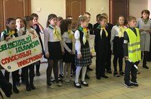 В школе проходит городская акция "Засветись". Члены ШСУ совместно с отрядо ЮИД вручили первым классам светоотражающие элементы и рассказали для чего они нужны.