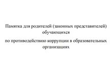 Памятка для родителей (законных представителей) обучающихся по противодействию коррупции в образовательных организациях.