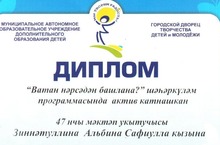 Учитель татарского языка и литературы Зиннатуллина А.С. награждена дипломом за активное участие...