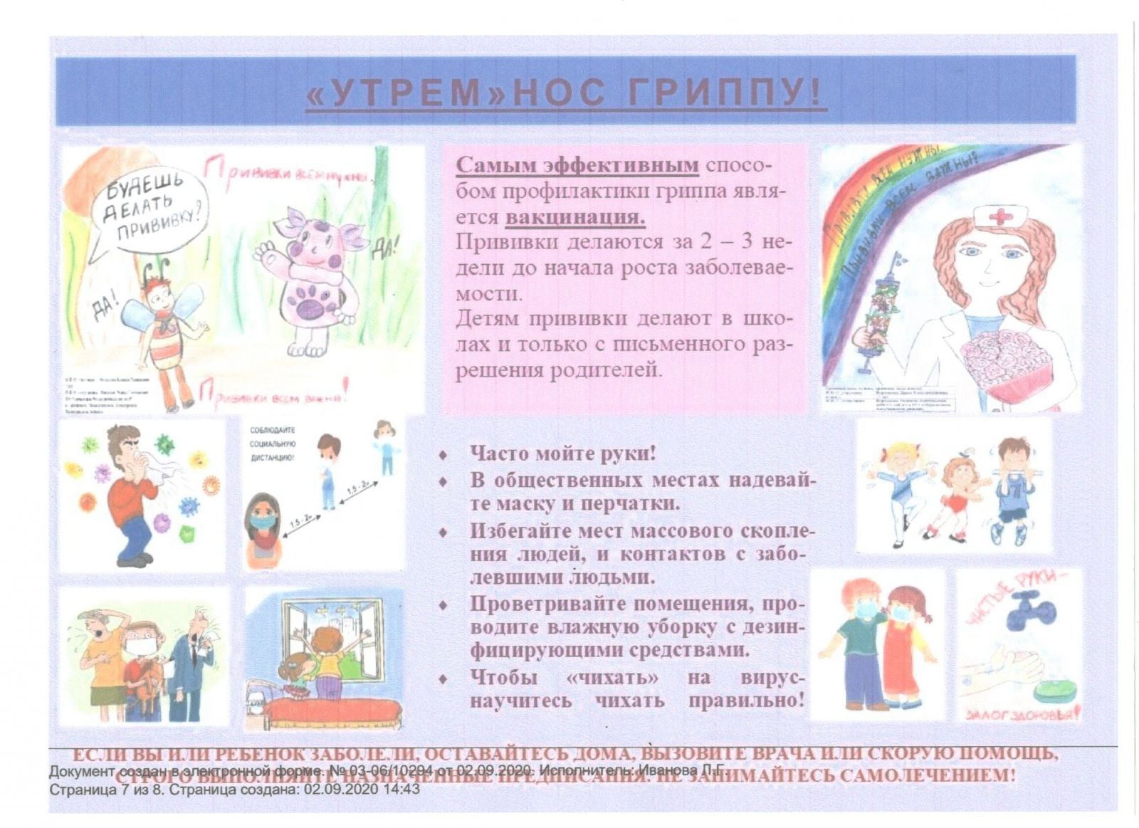 Уваждаемые родители, в целях усиления мероприятий по предупреждению заболевания гриппом и острых респираторных вирусных инфекций среди населения, в том числе новой коронавирусной инфекции (COVID-19), предлагаем вам ознакомиться с памятками о мерах профилактики гриппа.