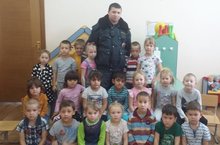 В нашем саду прошла встреча с инспектором ГИБДД. С воспитанниками была проведена беседа "О безопасности на дорогах". Во время беседы сотрудник ГИБДД Баширов Д. К. рассказал детям о том, как должны они вести себя на дороге, какие дорожные знаки должны знать и что делать, что бы предотварить дорожно-транспортное проишествие. Дети отвечали на вопросы, отгадывали загадки и сами активно спрашивали инспектора о различных ситуациях. Мы надеемся, что такие встречи с работниками ГИБДД научат детей правильно действовать в сложных ситациях, возникающих на дорогах. А это в свою очередь поможет сократить число дорожно-транспортных проишествий с участием детей.