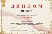 | Короткое название: | МБДОУ "Детский сад № 1 "Колокольчик" с. Шереметьевка" НМР РТ |