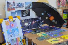 В детском саду проходит тематическая неделя "Далёкий и близкий космос". Педагоги проводят тематические занятия, на которых рассказывают детям о космосе и космонавтах, читают с детьми книги, рассматривают иллюстрации планет Солнечной системы. А свои полученные знания закрепляют творческими работами.